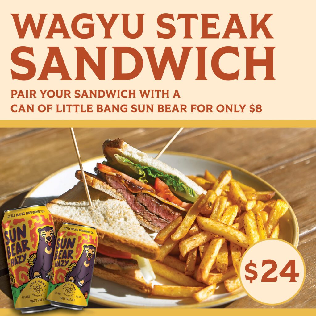 This April, enjoy our mouth-watering Wagyu steak sandwich special for just $24! Chips and good vibes included.