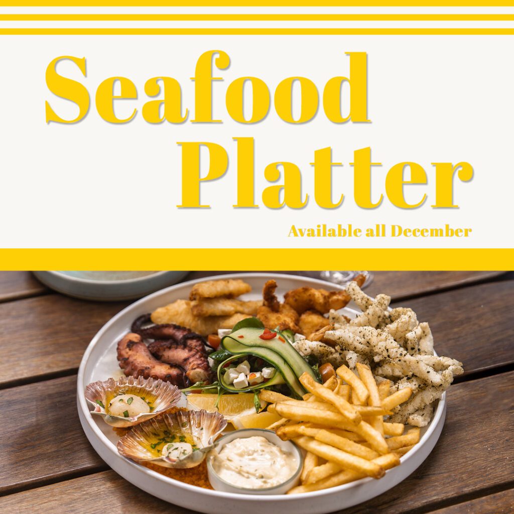 For $65, dive into our Seafood Platter, stacked with all the favourites: battered fish, scallops, octopus, squid, prawns, chips and salad.